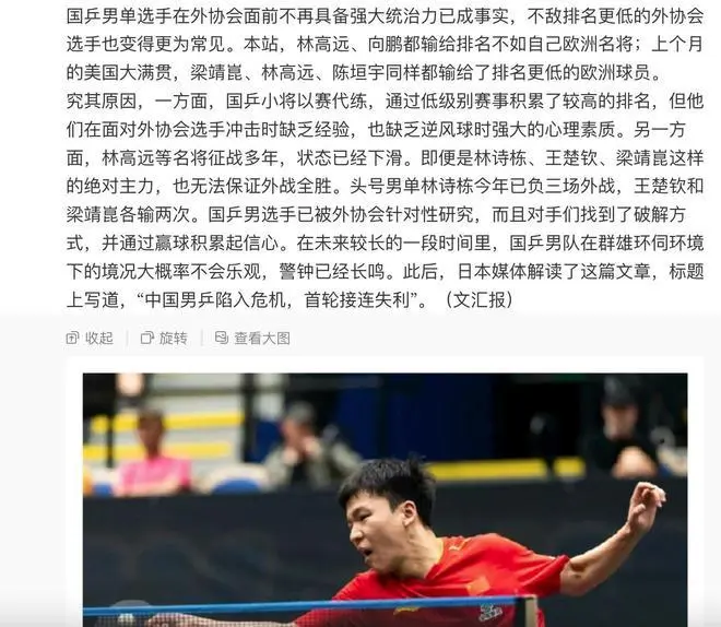 权威媒体对此现象进行了分析报道,指出中国男乒近期在国际赛事中的表现值得关注。报道回顾了从日本冠军赛到瑞典大满贯期间,中国选手的竞技状态变化轨迹。