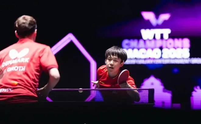男单方面,中国选手王楚钦在1/8决赛中逆转战胜丹麦选手格罗特晋级八强。比赛第二局成为关键转折点,王楚钦在1-6落后的情况下实现翻盘。他通过调整接发球策略和加强侧身进攻,最终以3-2的比分险胜对手。