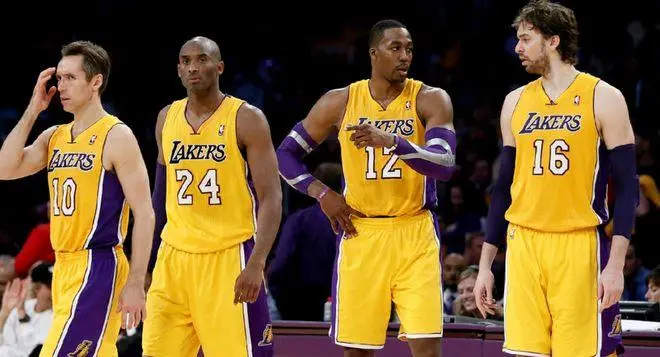 2009和2010年,湖人连续两年夺得总冠军。但2011年西部半决赛被小牛横扫,2012年次轮又负于雷霆。为保持竞争力,湖人在2012年休赛期通过四方交易得到德怀特·霍华德,并签下两届MVP史蒂夫·纳什。