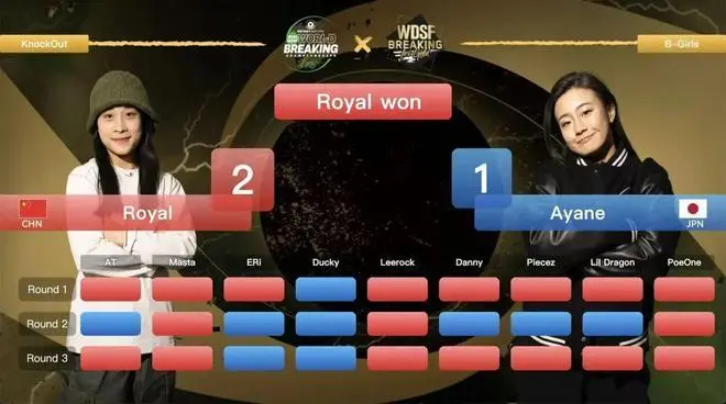 半决赛对阵日本选手Hiyo时,郭朴展示了高难度的Power Move组合与精准的音乐卡点技术。裁判组一致给出3:0的评分,确认其晋级决赛资格。这场胜利为中国队提前锁定奖牌。
