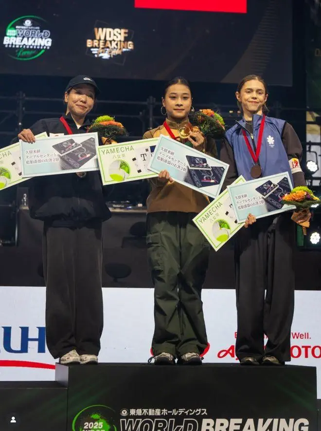 2025年WDSF世界霹雳舞锦标赛于12月13日在日本福冈县久留米市落幕,中国选手郭朴在女子组决赛中以3:0战胜日本选手Ayumi,成为中国首位霹雳舞世锦赛冠军。此次夺冠刷新了中国队在该赛事的历史最佳成绩。